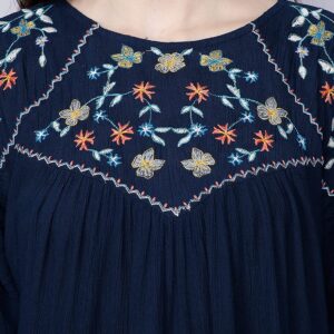 GLORYBOYZ Women's Yoke Embroidered Serene Bohemian Style Elastic Cuff Soft Viscose Blouse Top