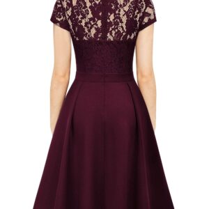 MISSMAY Women's Vintage Floral Lace Long Sleeve V Neck Cocktail Formal Swing Dress