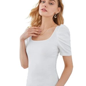 Shasmi Women’s White Square Neck Short Puff Sleeve Ruched Bust Solid Tops for Women/Tops for Girls (Shree Top 27)