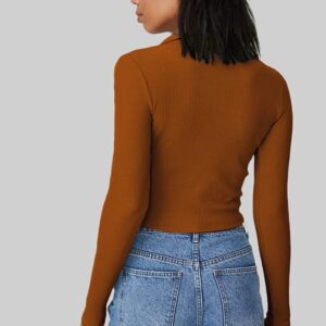 SIGHTBOMB Ribbed Polo Collar Extended Sleeves Tops for Women