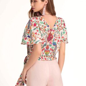 Shaye Women's Satin Wrap Top with Floral Print | Regular Fit | V Neck | Short Flared Sleeves | for Every Occasion | Cream